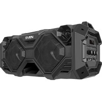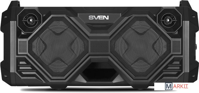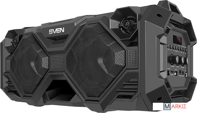 SVEN PS-490 обеспечивает 36 Вт звук благодаря наличию двух низкочастотных динамиков диаметром 100 мм и двум полноценным 35 мм высокочастотникам. Воспроизводить музыку на PS-490 можно через Bluetooth, FM-радио, а также c USB-флешек и microSD-карт. В колонке есть микрофонный вход. Простая в использовании панель управления и информативный дисплей позволяют настроить необходимые параметры и режимы работы. Два встроенных аккумулятора по 2000 мАч каждый обеспечат продолжительное время работы.